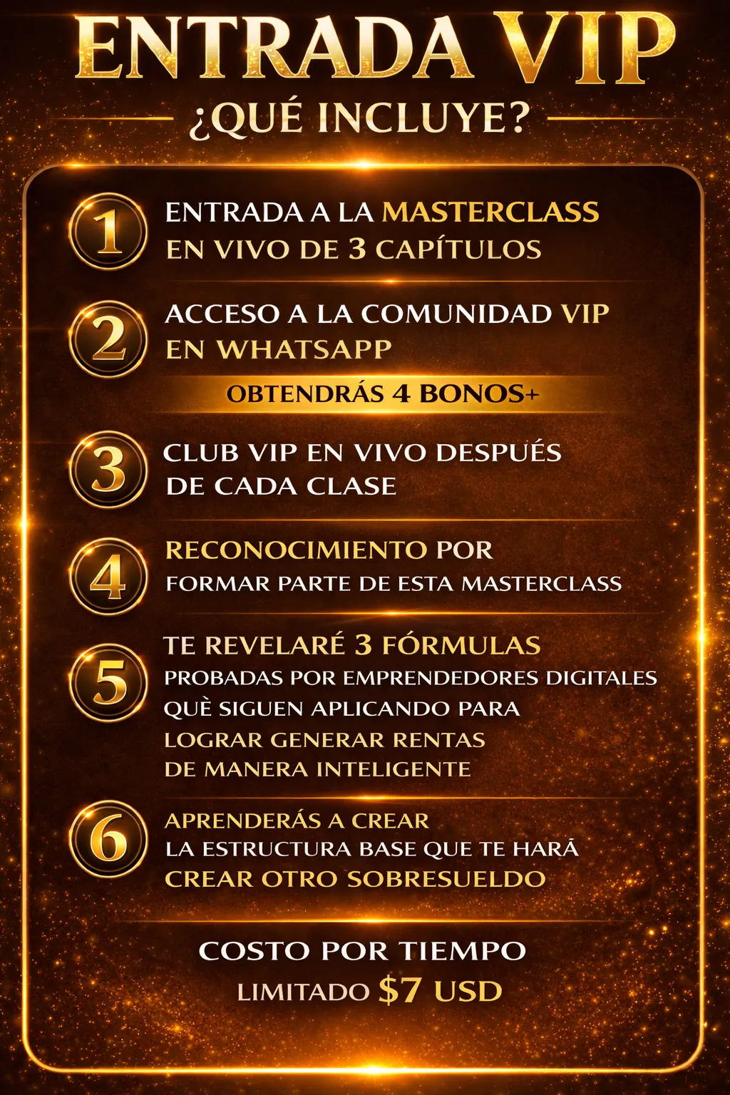 Aprenderás a obtener tu tienda digital que te genera una renta en dólares mes a mes aplicando una metodología probada.